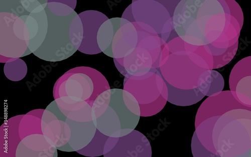 Multicolored translucent circles on a dark background. Pink tones. 3D illustration
