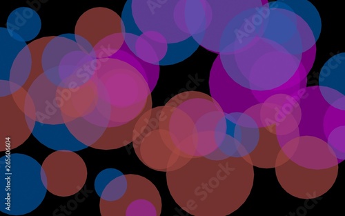 Multicolored translucent circles on a dark background. Red tones. 3D illustration