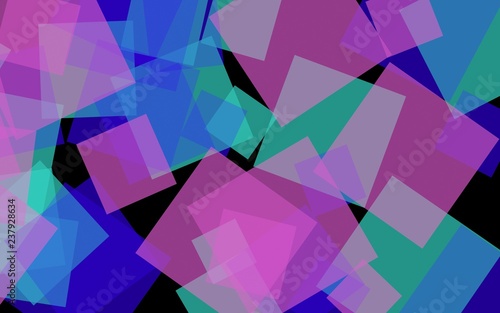 Multicolored translucent squares on dark background. Pink tones. 3D illustration