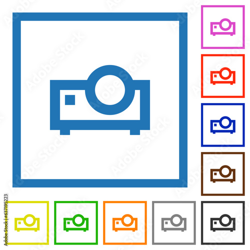 Multimedia projector outline flat framed icons