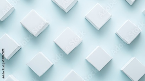 Multiple white gift boxes of different sizes are arranged in a precise layout on a soft pastel background, ideal for celebrating special occasions or gift-giving