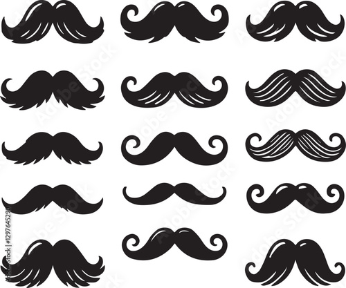 Mustache silhouette vector design set, Mustache vector illustration set, Mustache logo vector set, Mustache silhouette vector bundle black and white