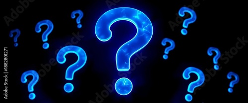 Mysterious blue question marks on a dark background, puzzle, question