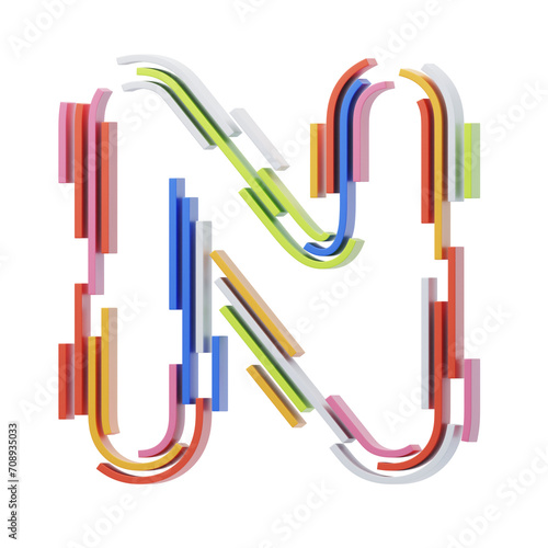 N Letter 3D Shape Stripes Text. 3d illustration, 3d element, 3d rendering. 3d visualization isolated on a transparent background