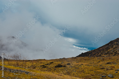Nathang Valley clouds over mountains