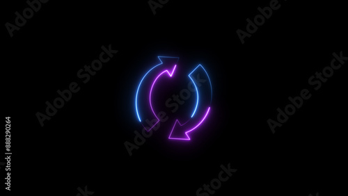 Neon arrow loading and uploading icon concept. Neon arrow rotation background