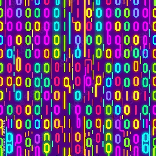 Neon Binary Code: A vibrant and dynamic abstract background featuring a colorful array of neon binary code, creating a visually striking and energetic pattern.