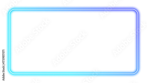 Neon blue glowing rounded rectangle frame element with transparent background