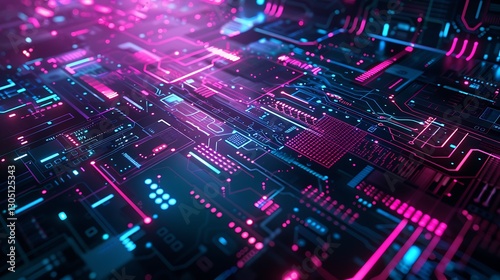 Neon Circuit Board: Abstract Digital Technology