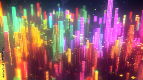 Neon Cityscape Abstract Digital Art 3D Render Future City