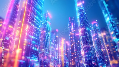 Neon Cityscape Abstract Background - Futuristic Architecture