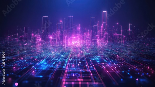Neon cityscape digital transformation futuristic background