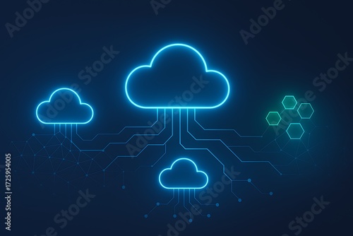Neon Cloud Computing Network with Data Connections and Abstract Technology