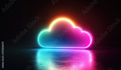 Neon Cloud Icon on Reflective Floor