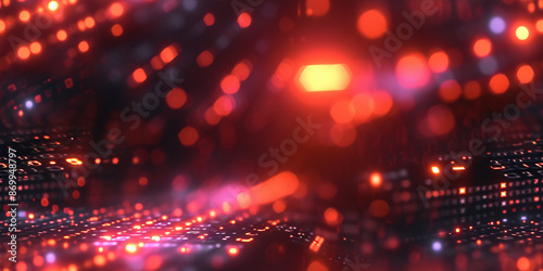 Neon colored data streams and code snippets creating a futuristic pattern (tile)