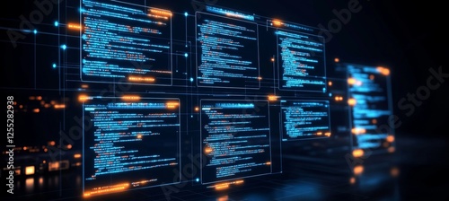 Neon Computer Code on Digital Screens Modern Programming and Software Development Concept