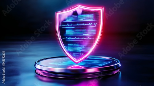neon cyber security shield digital data - neon/cyberpunk aesthetics