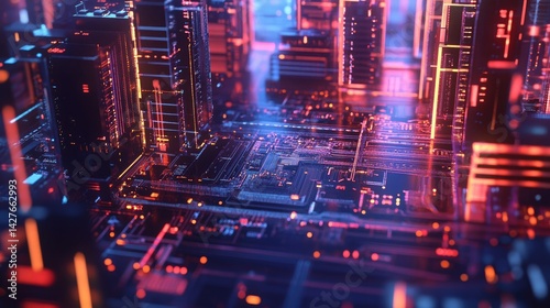Neon Cyberpunk Cityscape Digital Metropolis at Night.
