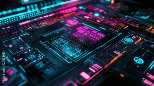 Neon Cyberpunk Digital Interface: Futuristic Technology Background