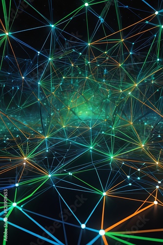 Neon Digital Network: Abstract 3D Node Art, Vast Interconnected Digital Grid, Glowing Neon Pathways