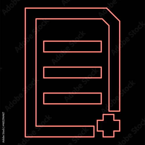 Neon document sheet add red color vector illustration flat style image
