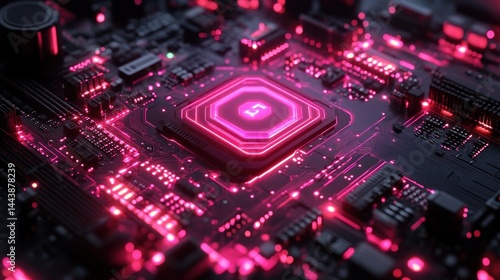 Neon Glow: Close-Up of a Futuristic Circuit Board