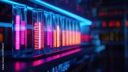 Neon Glow: Futuristic Data Visualization in Test Tubes