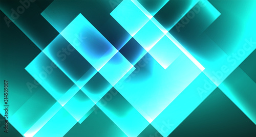 Neon glowing techno square rectangle lines, blue hi-tech futuristic abstract background