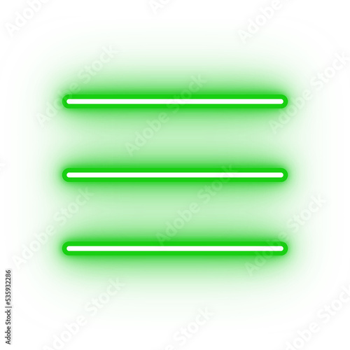 Neon green centre align icon, glowing menu icon on transparent background