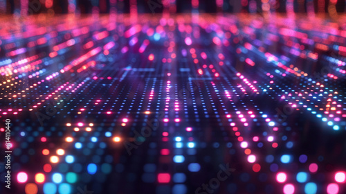 Neon grid, a grid of matrix codes lighting up a dark backdrop