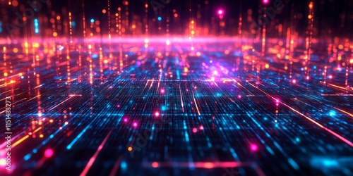 Neon grids forming intricate futuristic abstract patterns. Generative AI