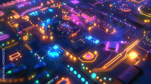 Neon Illuminated Circuit Board Abstract Design