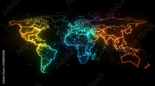 Neon illuminated cyber space with 3D rendered global world showing energy power and technology connections