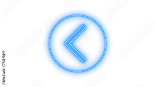 Neon left arrow icon on transparent background. back navigation, previous step, and return button