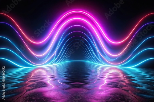 Neon light waves creating silhouette in dark void