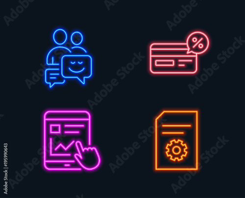 Neon lights. Set of Cashback, Internet report and Communication icons. File settings sign. Non-cash payment, Web tutorial, Business messages. File management. Glowing graphic designs. Vector