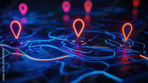 Neon map with glowing location markers