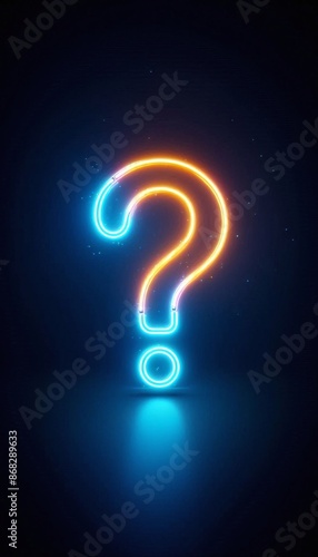 Neon question mark floating on a dark background - Concept for doubt and questioning