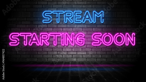 Neon Stream Starting Soon, Retro Brick Wall Background