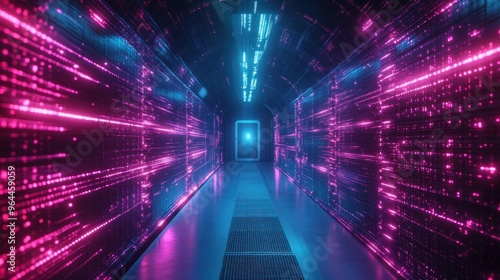 Neon Tunnel of Digital Data