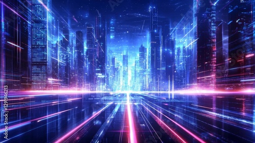 Neon-infused abstract background showcasing technology particles.