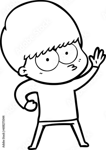 nervous cartoon boy
