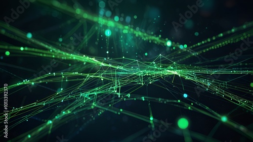 Network, connection and digital transformation for electronic database with bokeh effect. Abstract background of speed, light and neon green pattern for cloud computing and code
