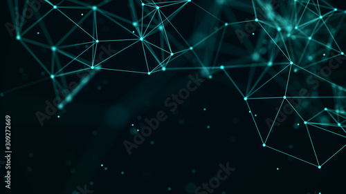 Network connection structure. Data transfer. Abstract background with interweaving of dots and lines. 3D rendering.