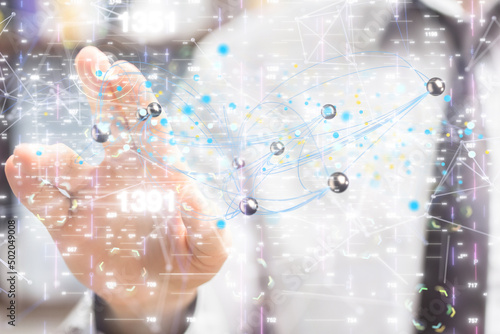 network holding in hand 3d connection data.