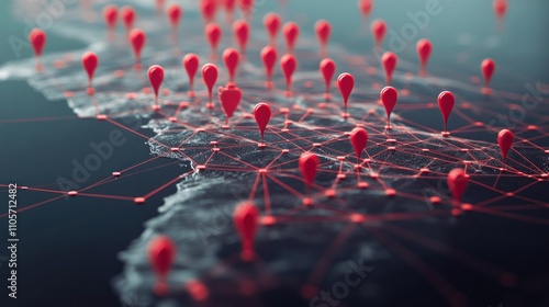 Network map with red pins showing connections.