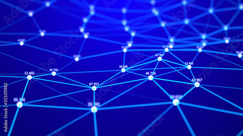 Network of connected dots and lines. Big data. Abstract digital background. Grid. Block chain. 3d rendering.