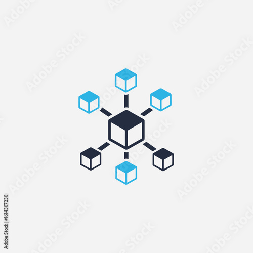 Network of cubes connected by lines on a white background.