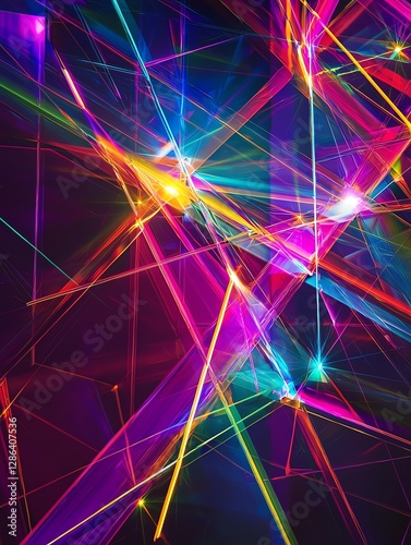 Network of light beams intertwining with prism reflections, forming symbiotic relationships in the rainbow dimension, spectral beauty