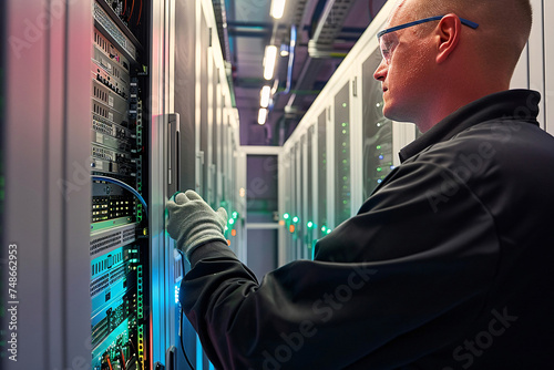 networking engineer, netwokring equiment, electrician at work, servers, server room, IT Administrator, Datacenter, service provider, database, computer server room, data storage, network hub and patch
